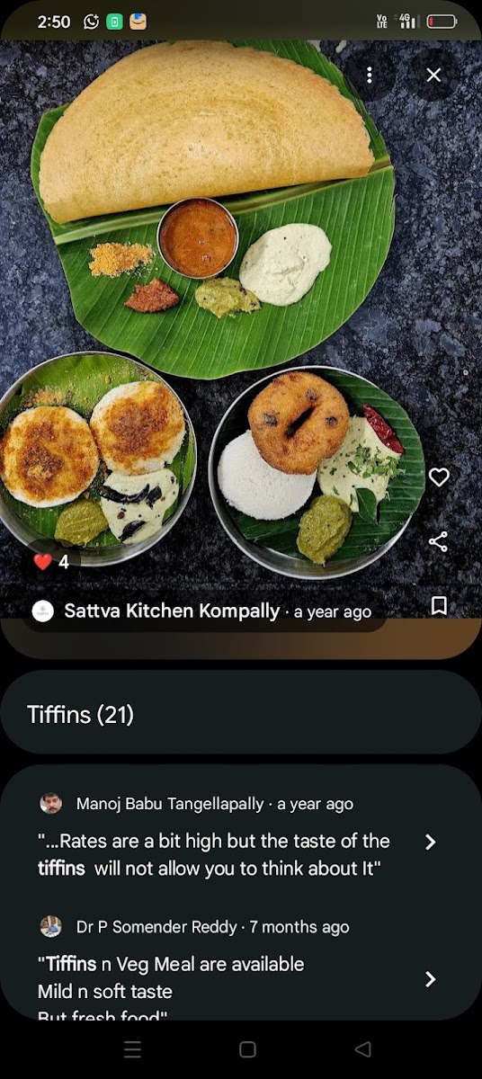 Welcome to Sattva Kitchen Kompally, a delightful gem for South Indian cuisine located in Gundlapochampally, Hyderabad. This charming eatery is perfect for food enthusiasts seeking authentic flavors. The menu features a variety of all-day tiffins, including soft and fluffy Idlis, crispy Dosas, and delicious Pooris, all lovingly prepared to bring warmth to your breakfast table.